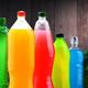 विभिन्न रंगों में मिश्रित कार्बोनेटेड शीतल पेय की प्लास्टिक की बोतलें। छवि केवल प्रस्तुतिकरण प्रयोजनों के लिए है।