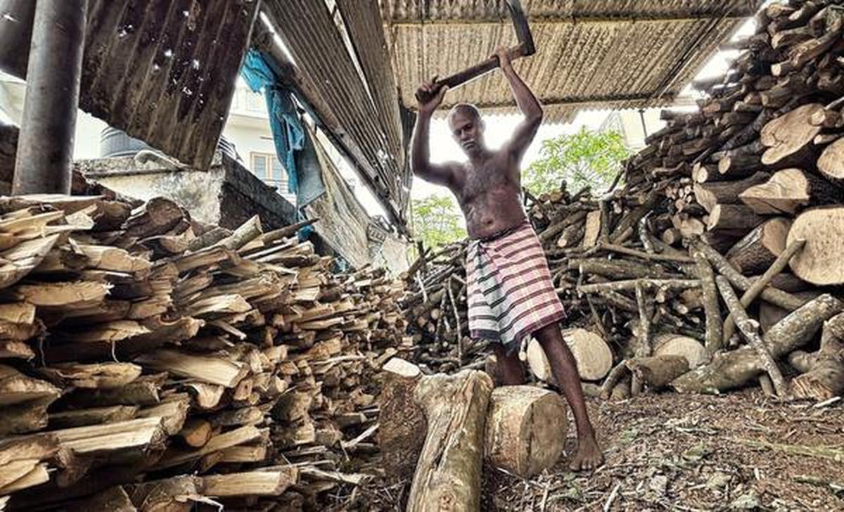 आवश्यक वस्तु: तिरुवनंतपुरम के नेय्याट्टिनकारा में एक जलाऊ लकड़ी की दुकान पर लकड़ी काटता हुआ एक कर्मचारी। होटलों और घरों में बढ़ती मांग के कारण जलाऊ लकड़ी की कीमत तेजी से बढ़ी है।