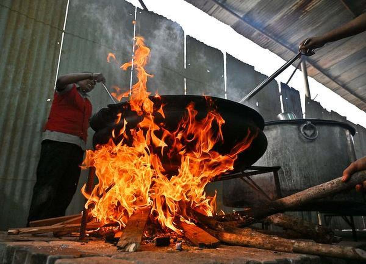 स्टोव जो कमी को दूर करते हैं: समृद्धि@कोच्चि में एलपीजी संकट के बाद जलाऊ लकड़ी के स्टोव का उपयोग किया जा रहा है, जो केरल में भूख-मुक्त पहल के हिस्से के रूप में कोच्चि निगम और कुदुम्बश्री के एर्नाकुलम जिला मिशन द्वारा संयुक्त रूप से संचालित एक बजट भोजनालय है।