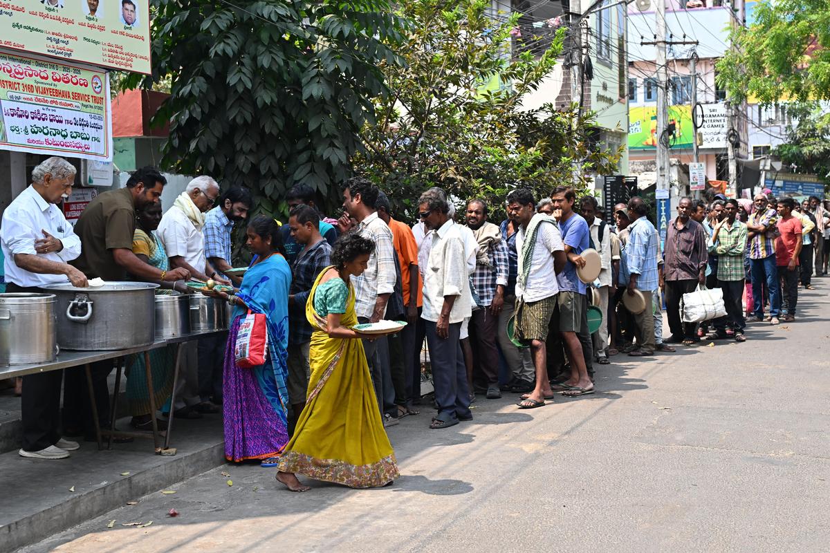 भूख का ईंधन: एक स्थानीय गैर सरकारी संगठन के सदस्य आंध्र प्रदेश के विजयवाड़ा में गरीबों और जरूरतमंदों को भोजन परोसते हैं। एनजीओ के पदाधिकारियों का कहना है कि एलपीजी सिलेंडर खत्म हो जाने के कारण उन्हें लकड़ी पर निर्भर रहना पड़ेगा।