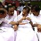एक दीवार, तीन प्रतिद्वंद्वी: एनडीए, एलडीएफ और यूडीएफ उम्मीदवार पद्मजा वेणुगोपाल, अलंकोडे लीलाकृष्णन और राजन जे. पल्लन ने केरल के त्रिशूर में प्रचार अभियान साझा किया | फोटो साभार: नजीब केके