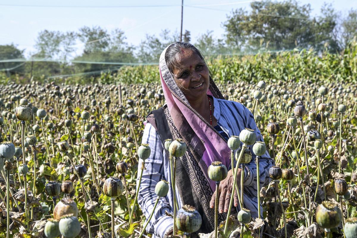 सपनों का क्षेत्र: मंदसौर जिले के बही गांव में एक महिला खेत मालिक अपने अफीम के खेत में लांसिंग के काम की देखरेख करती है।