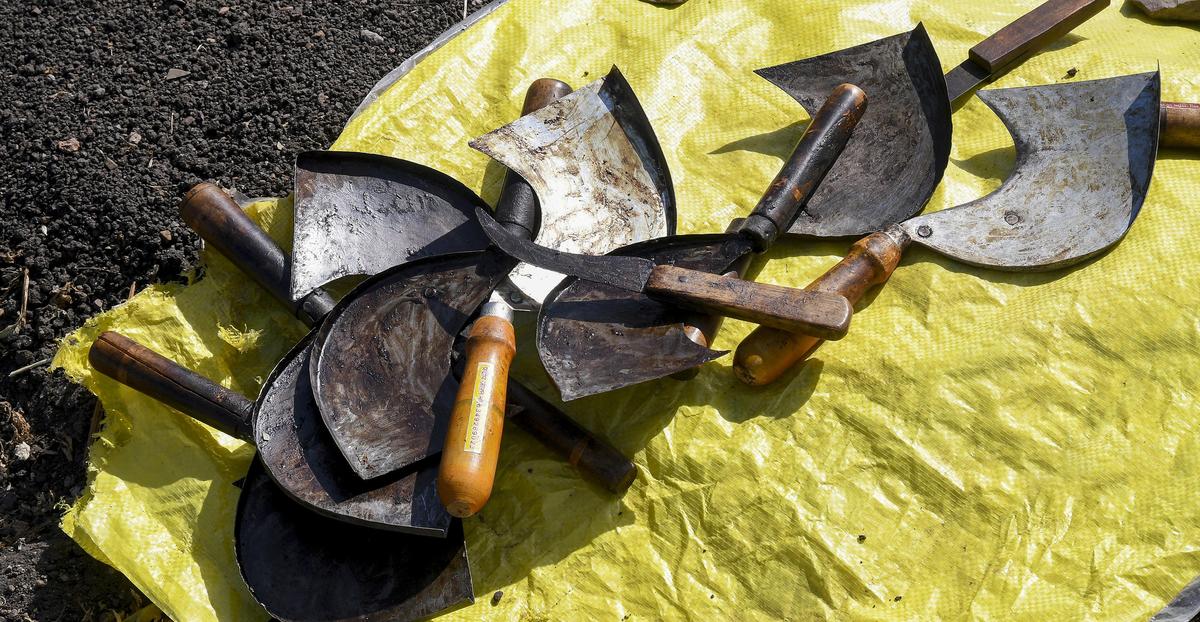 तेज़ धार: पारंपरिक चाकू और उपकरण जो खसखस के कैप्सूल पर भाला लगाते थे और अफ़ीम लेटेक्स इकट्ठा करते थे।